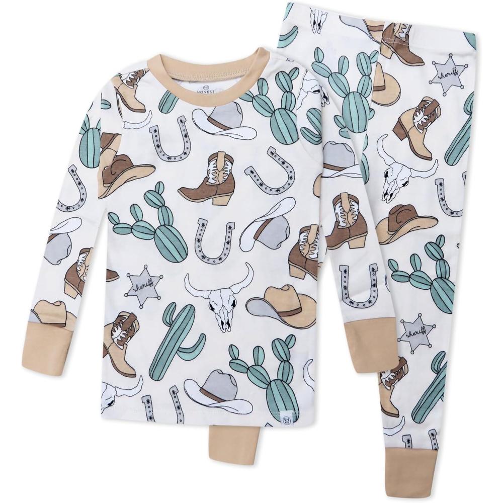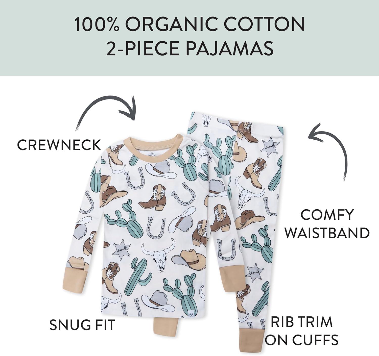 HonestBaby baby-boys 2-piece Pajamas Sleepwear Pjs 100% Organic Cotton for Baby, Toddler, Kids, Boy(Cowboys)