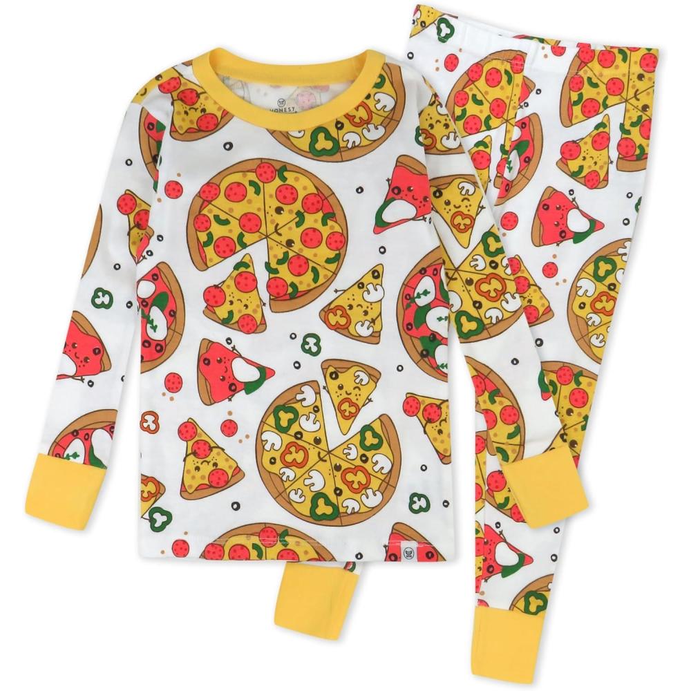 HonestBaby baby-boys 2-piece Pajamas Sleepwear Pjs 100% Organic Cotton for Baby, Toddler, Kids, Boy(Pizza Party)