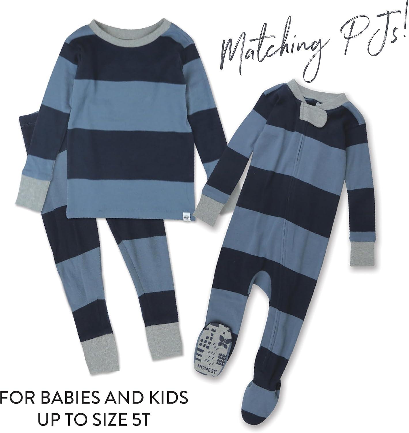 HonestBaby baby-boys 2-piece Pajamas Sleepwear Pjs 100% Organic Cotton for Baby, Toddler, Kids, Boy(Rugby Stripe Navy)