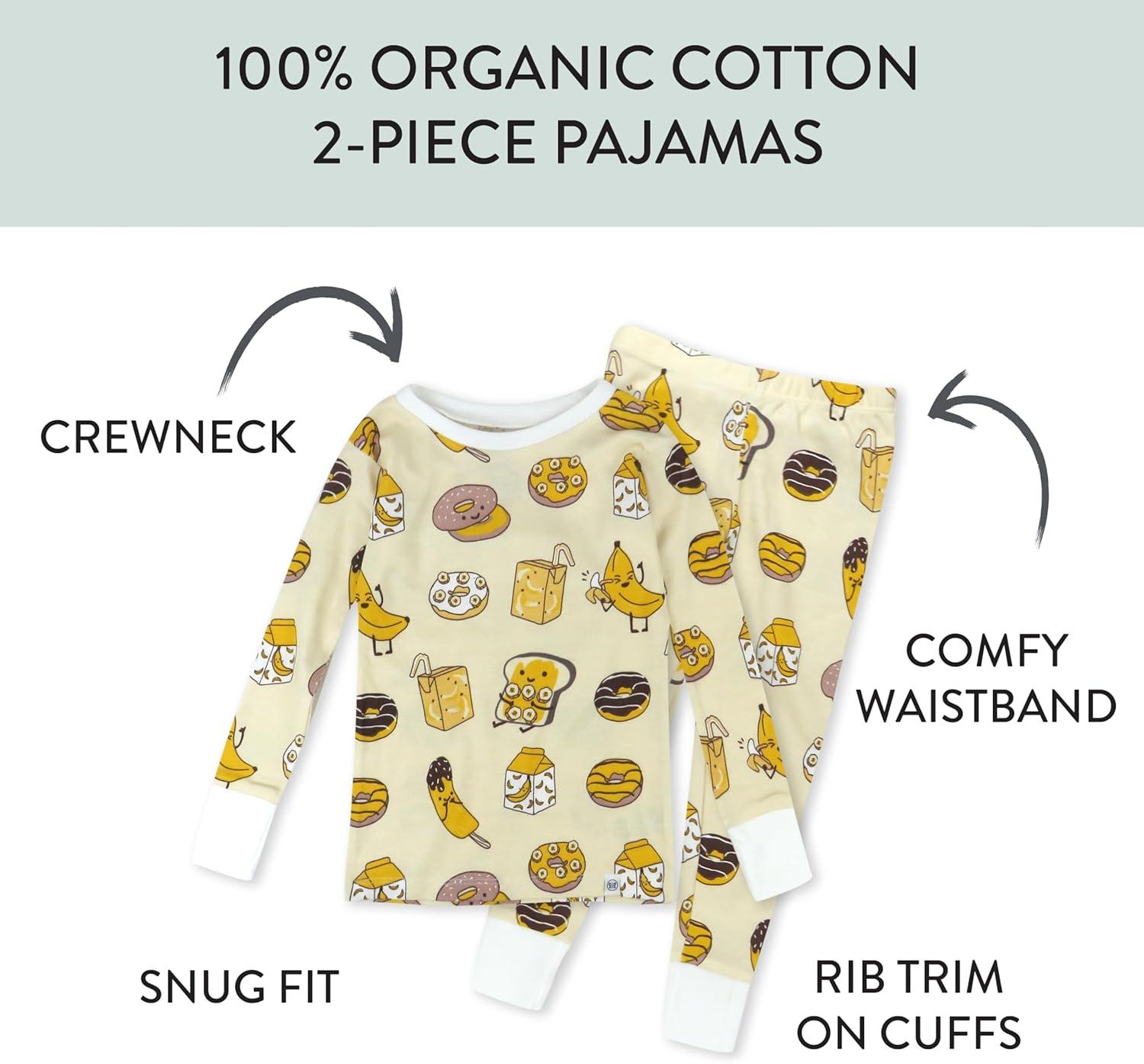 HonestBaby baby-boys 2-piece Pajamas Sleepwear Pjs 100% Organic Cotton for Baby, Toddler, Kids, Boy(Sweet Banana)