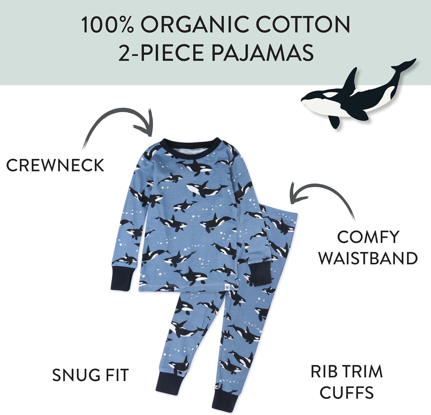 HonestBaby baby-boys 2-piece Pajamas Sleepwear Pjs 100% Organic Cotton for Baby, Toddler, Kids, Boy(Whales)