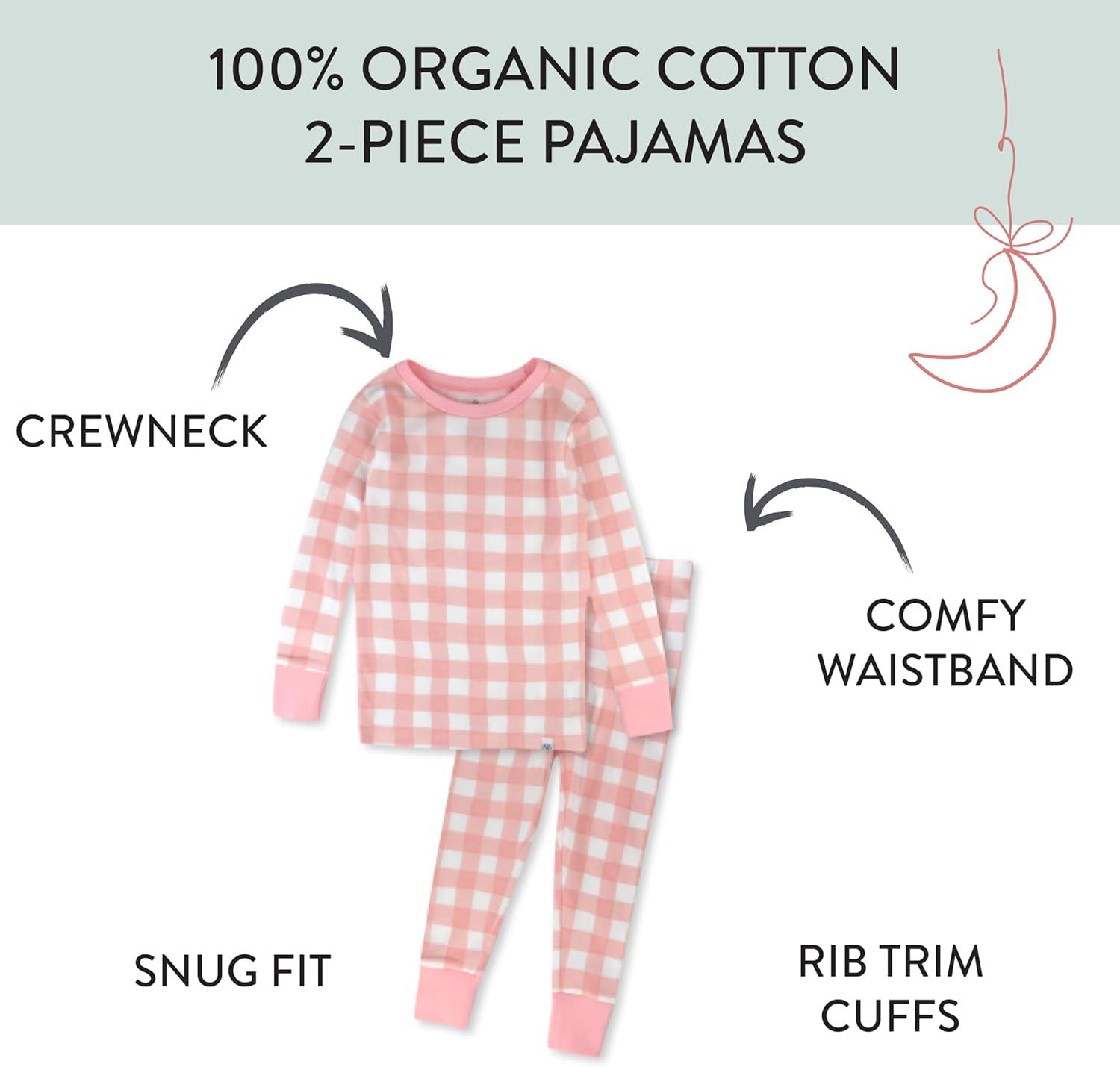 HonestBaby baby-girls 2-piece Pajamas Sleepwear Pjs 100% Organic Cotton for Baby, Toddler, Kids, Girl(Pink Check)