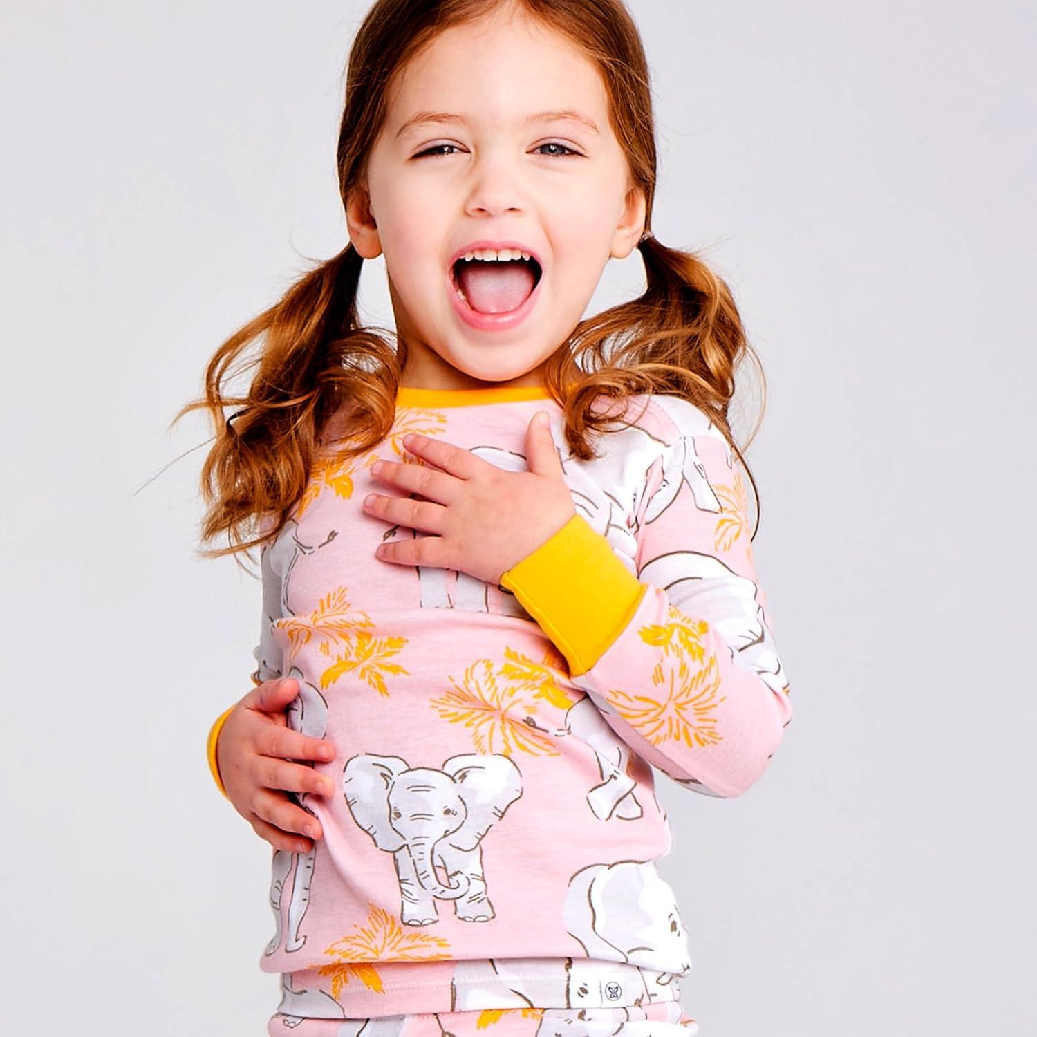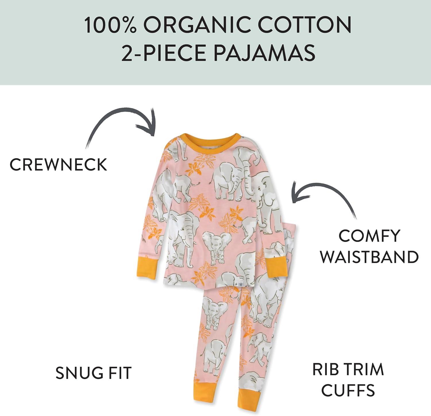 HonestBaby baby-girls 2-piece Pajamas Sleepwear Pjs 100% Organic Cotton for Baby, Toddler, Kids, Girl(Pink Elephant)