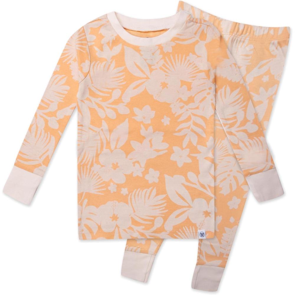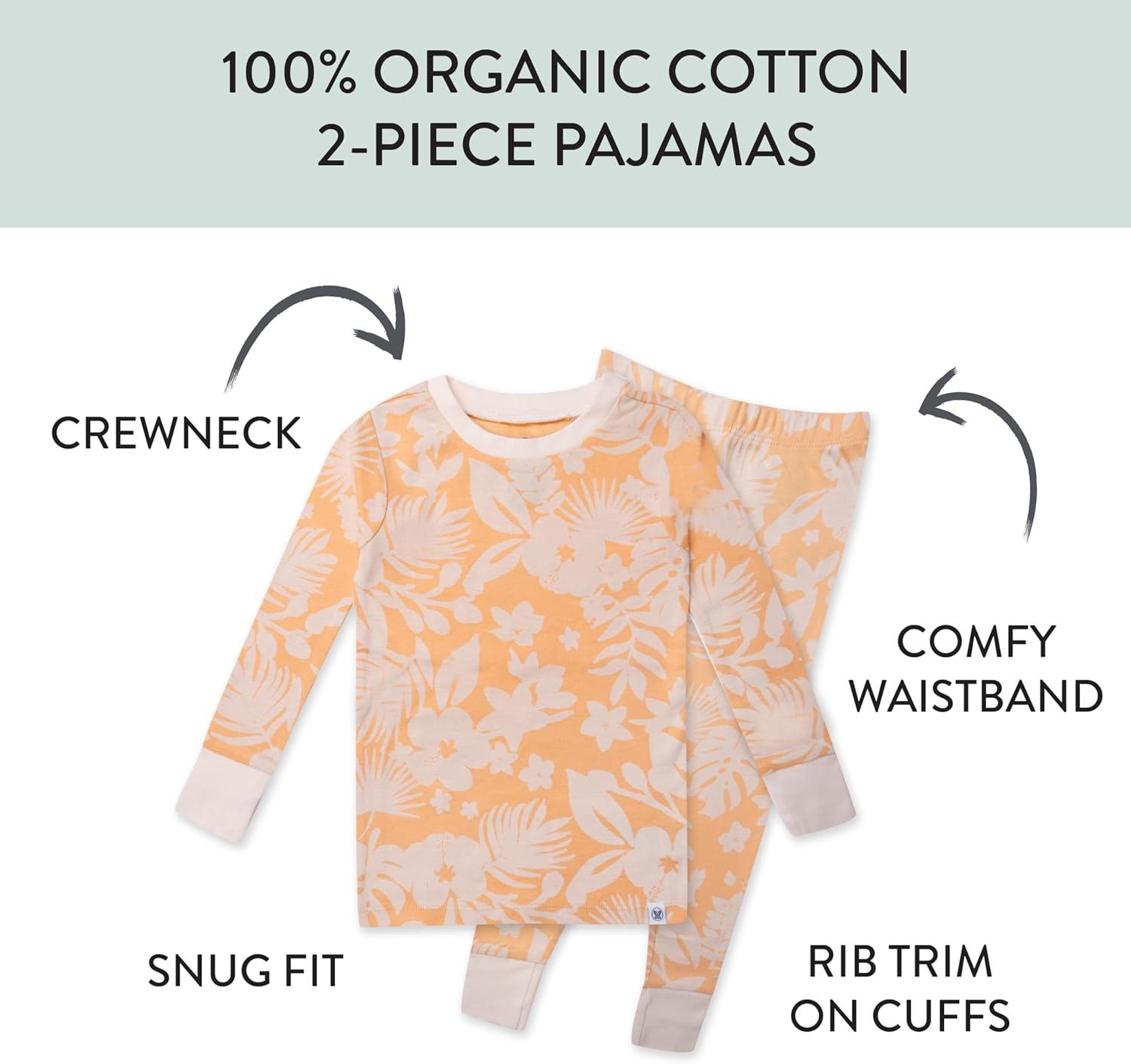 HonestBaby baby-girls 2-piece Pajamas Sleepwear Pjs 100% Organic Cotton for Baby, Toddler, Kids, Girl(Tropic Shadow Peach)