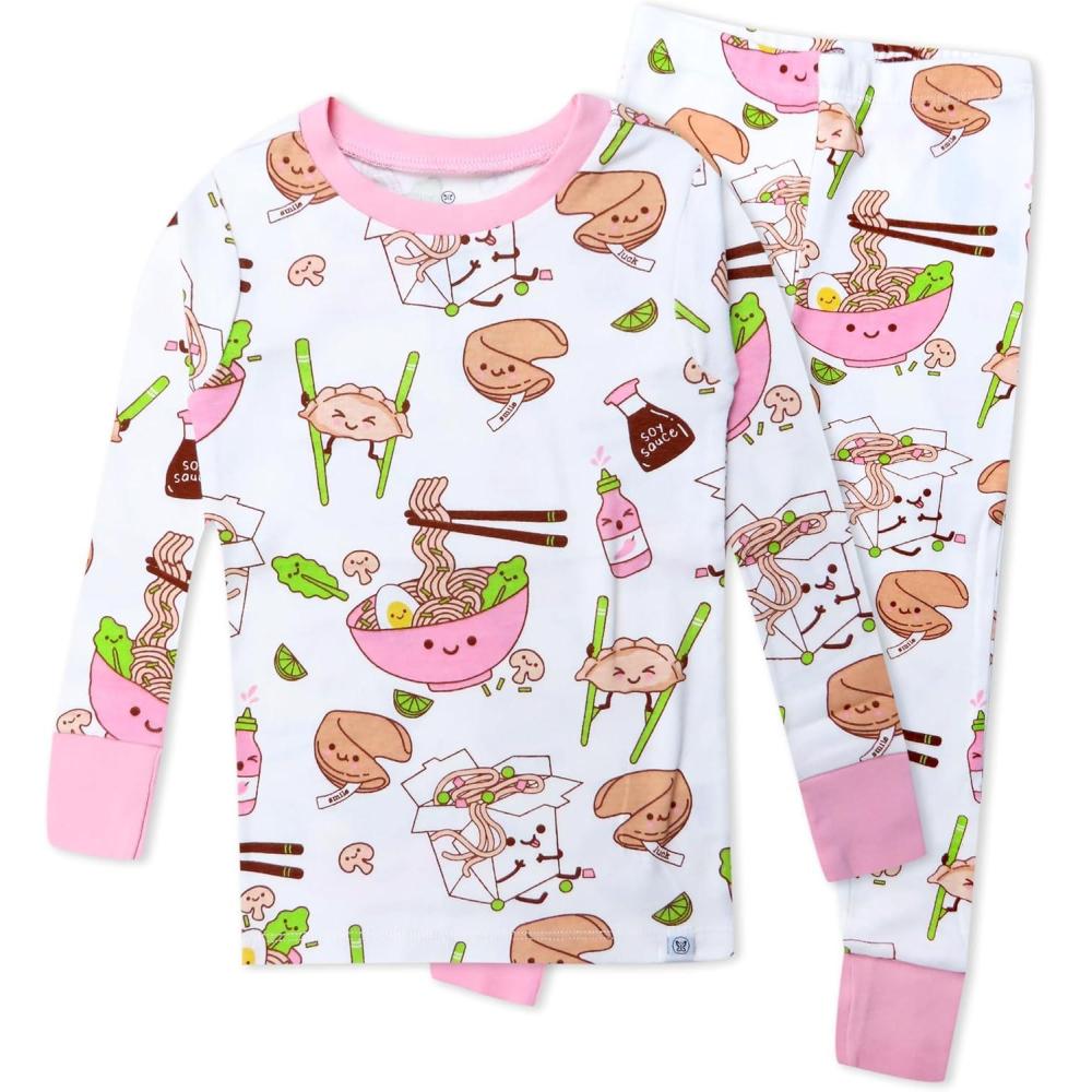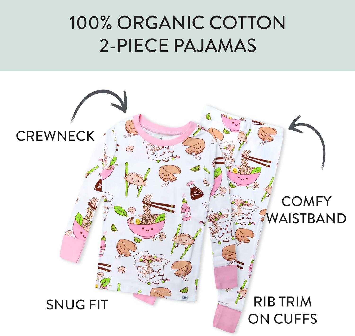 HonestBaby baby-girls 2-piece Pajamas Sleepwear Pjs 100% Organic Cotton for Baby, Toddler, Kids, Girl(Wok N Roll Pink)