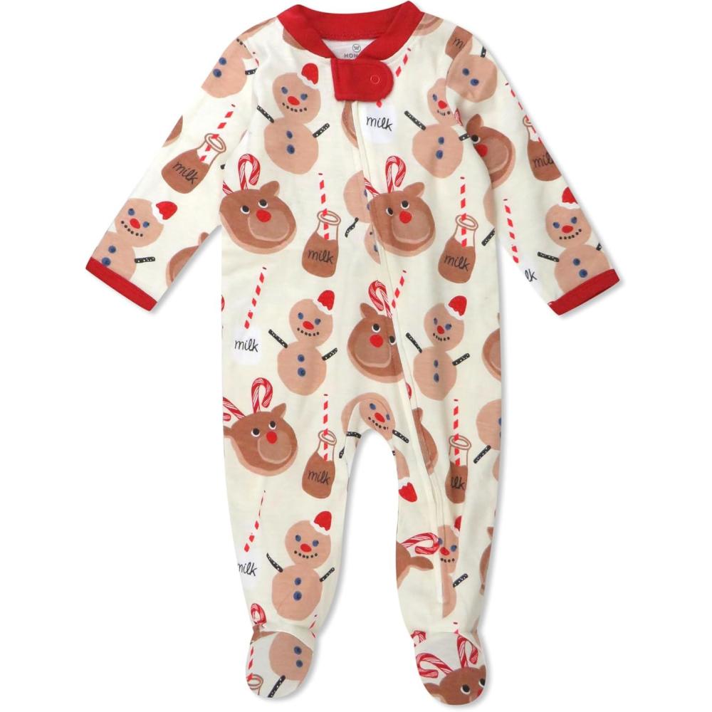 HonestBaby Baby Holiday Sleep & Play Footed One-Piece Pajama Sleeper 100% Organic Cotton(Breakfast Deer)