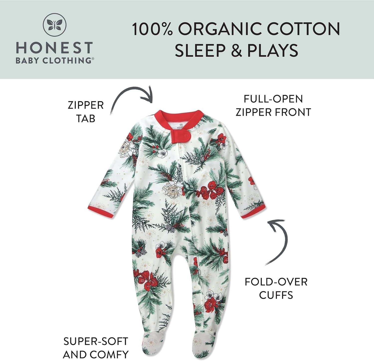 HonestBaby Baby Holiday Sleep & Play Footed One-Piece Pajama Sleeper 100% Organic Cotton(Feelin Pine)