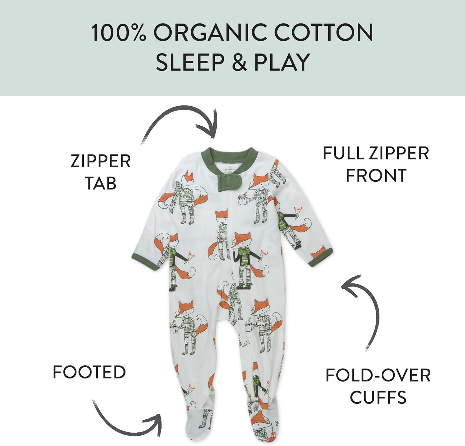 HonestBaby Baby Holiday Sleep & Play Footed One-Piece Pajama Sleeper 100% Organic Cotton(Foxy Green)