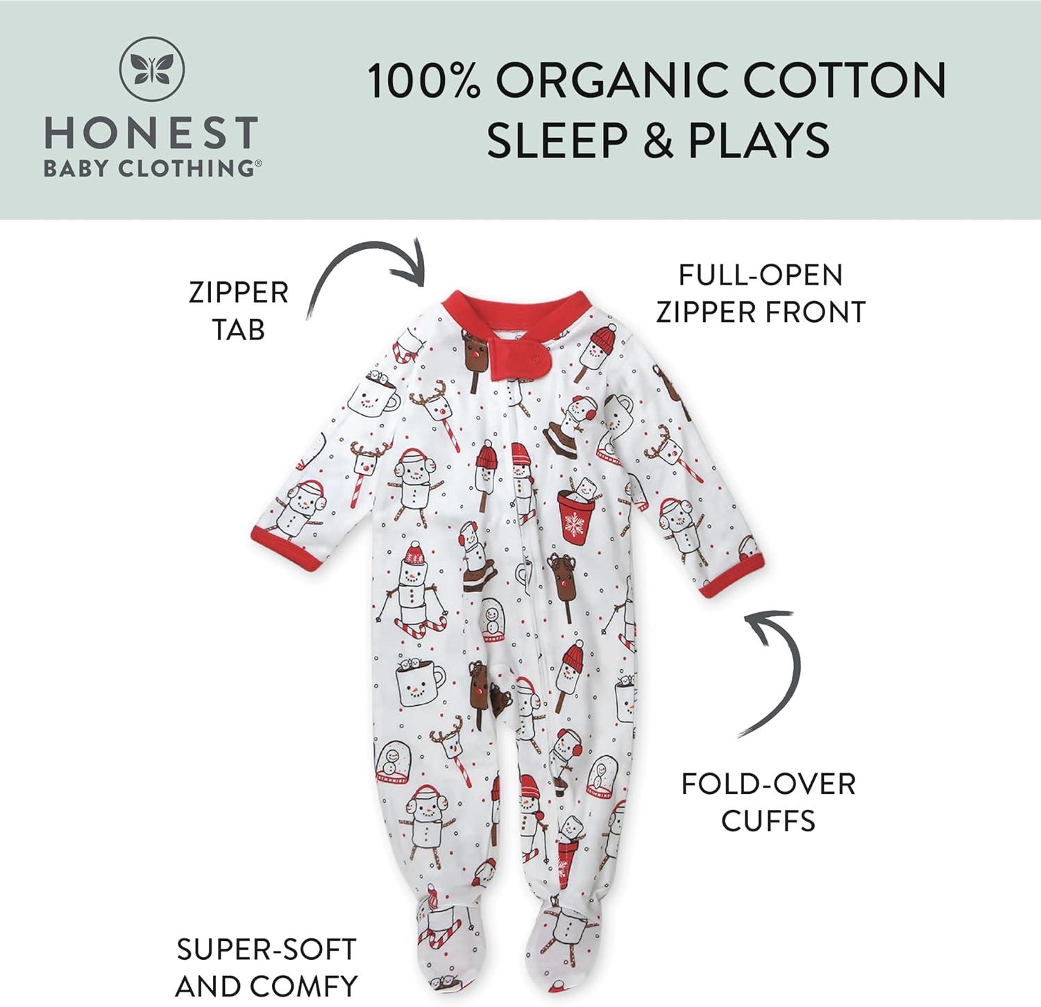 HonestBaby Baby Holiday Sleep & Play Footed One-Piece Pajama Sleeper 100% Organic Cotton(Ooie Gooie Holiday)
