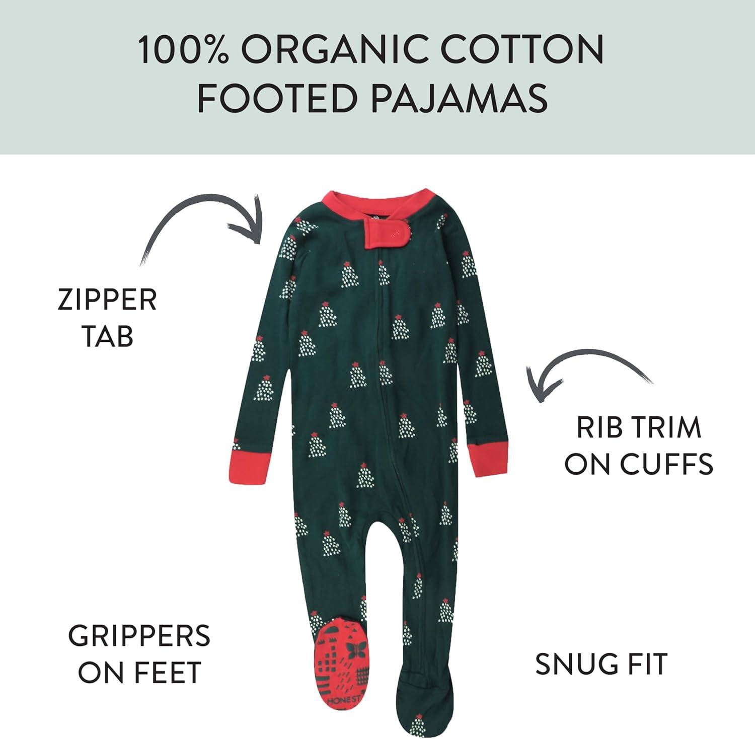 HonestBaby Baby One-Piece Holiday Non-Slip Footed 100% Organic Cotton Pajamas(A Pine Holiday)