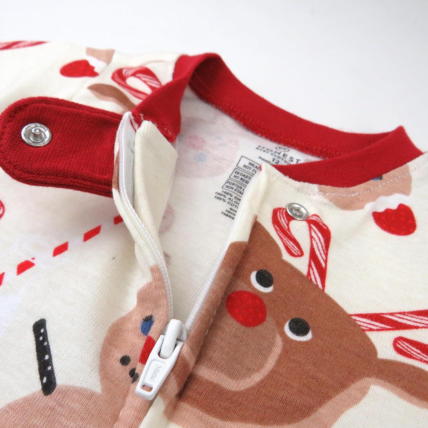 HonestBaby Baby One-Piece Holiday Non-Slip Footed 100% Organic Cotton Pajamas(Breakfast Deer)