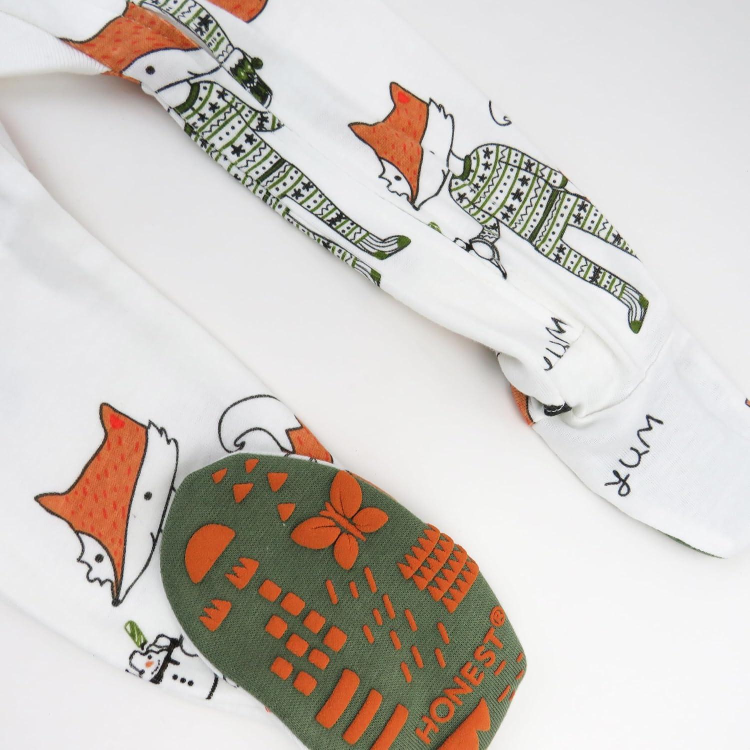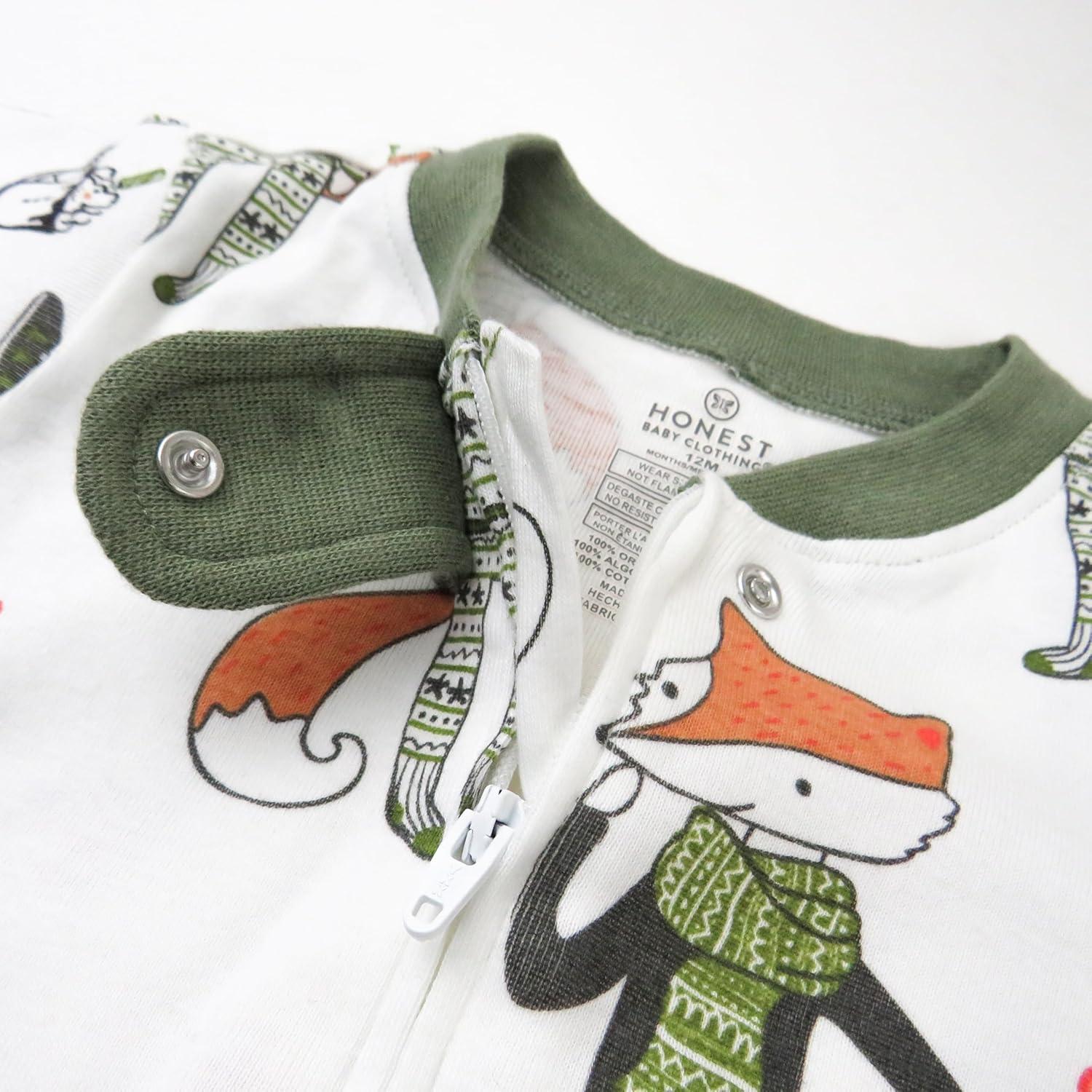 HonestBaby Baby One-Piece Holiday Non-Slip Footed 100% Organic Cotton Pajamas(Foxy Green)