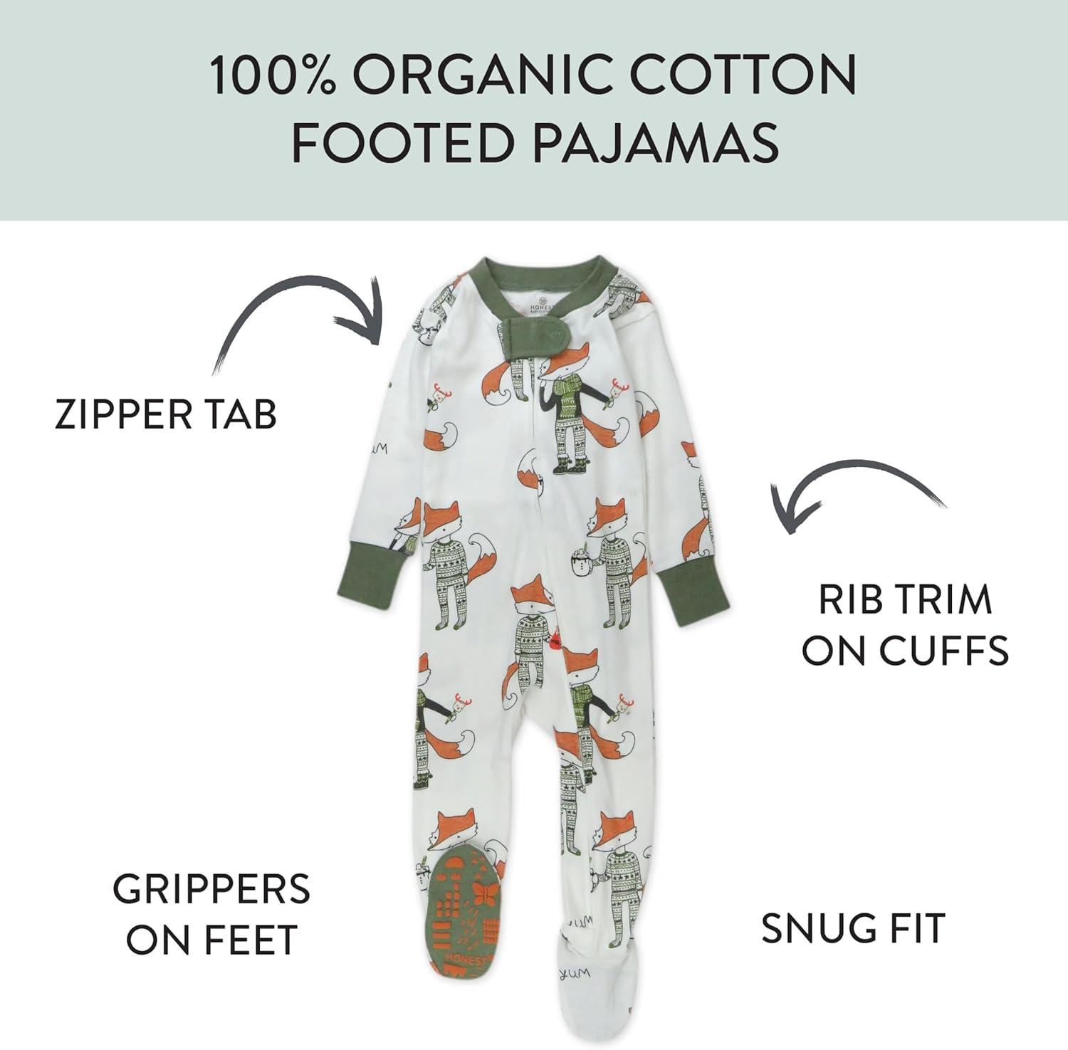 imageHonestBaby Baby OnePiece Holiday NonSlip Footed 100 Organic Cotton PajamasFoxy Green