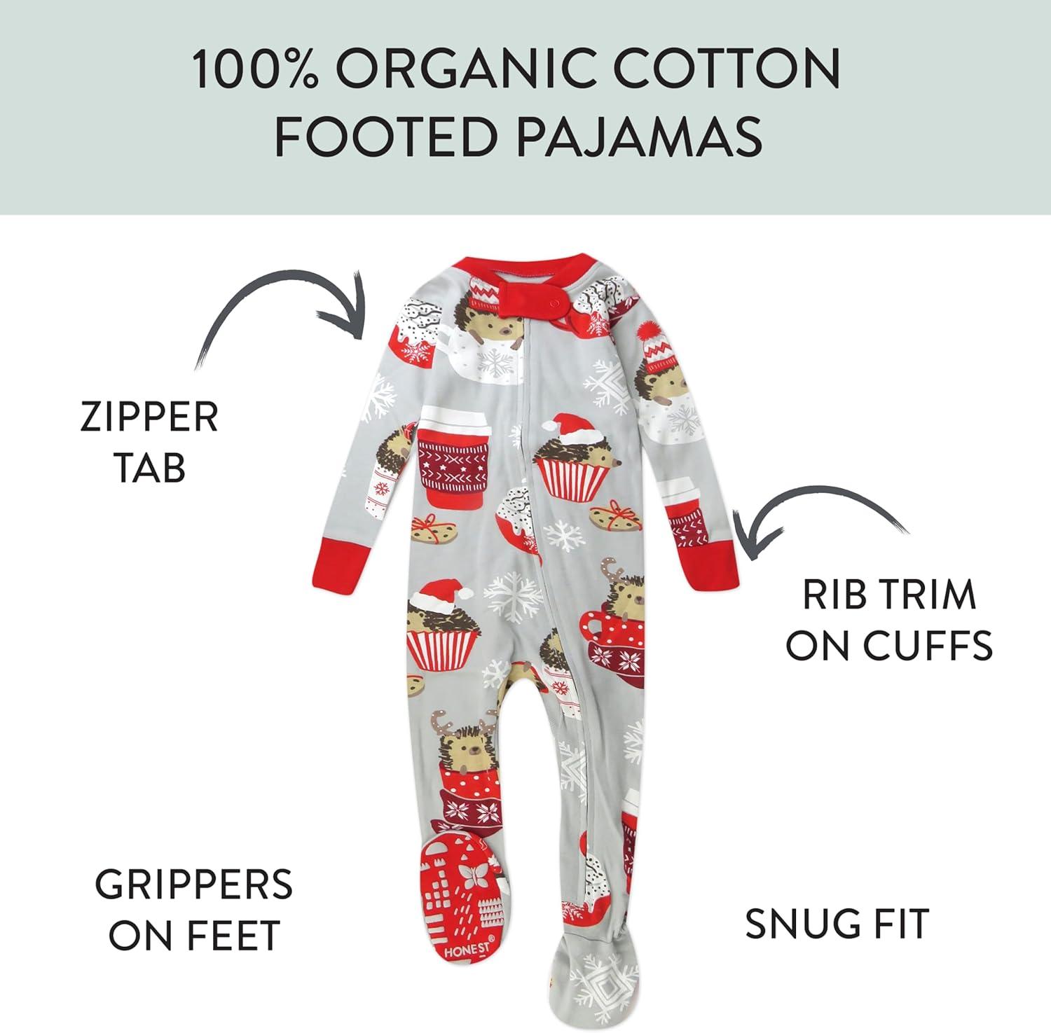 HonestBaby Baby One-Piece Holiday Non-Slip Footed 100% Organic Cotton Pajamas(Hedgehog & Cocoa)