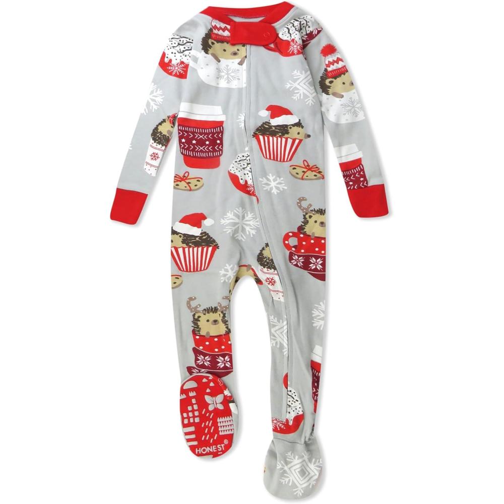 imageHonestBaby Baby OnePiece Holiday NonSlip Footed 100 Organic Cotton PajamasHedgehog  Cocoa