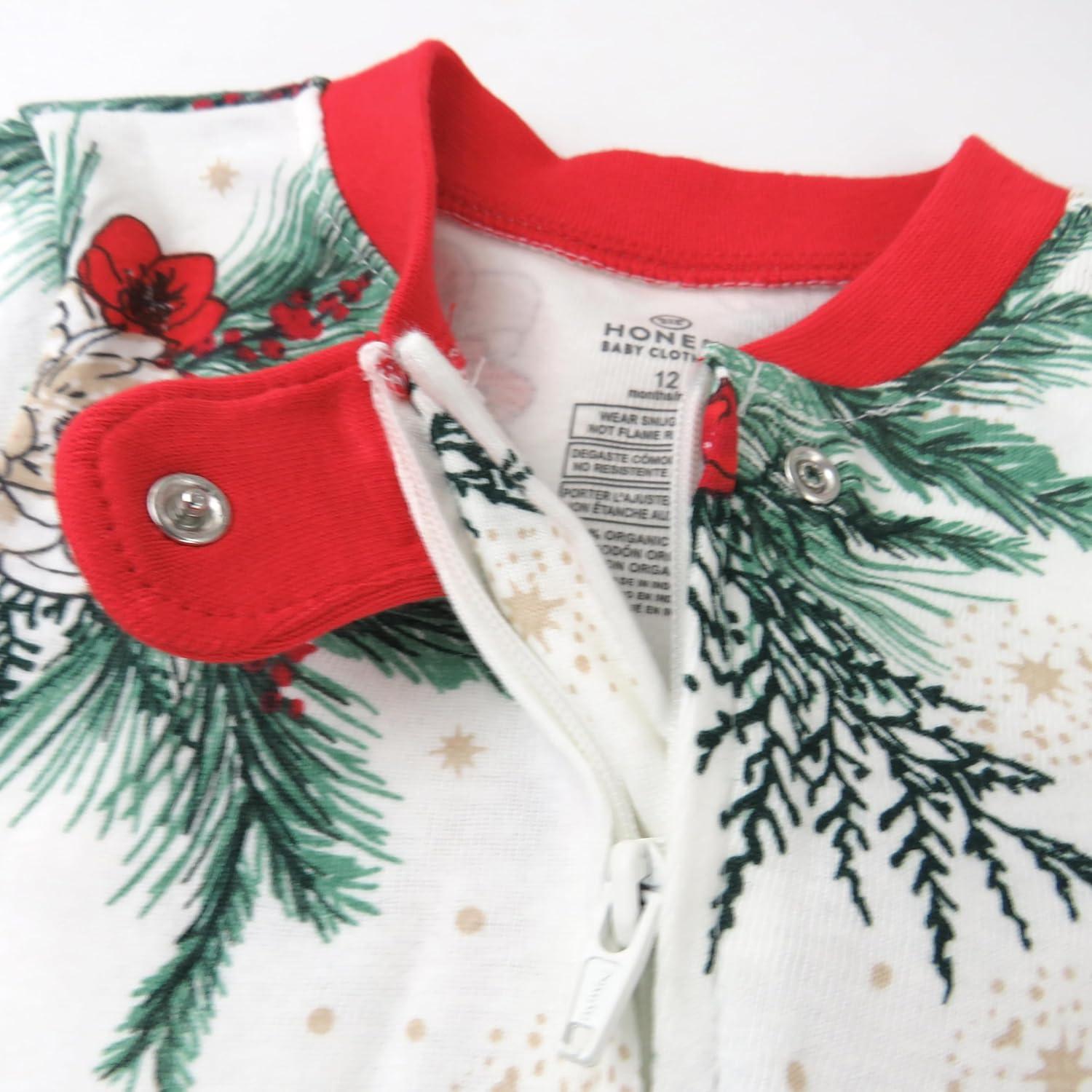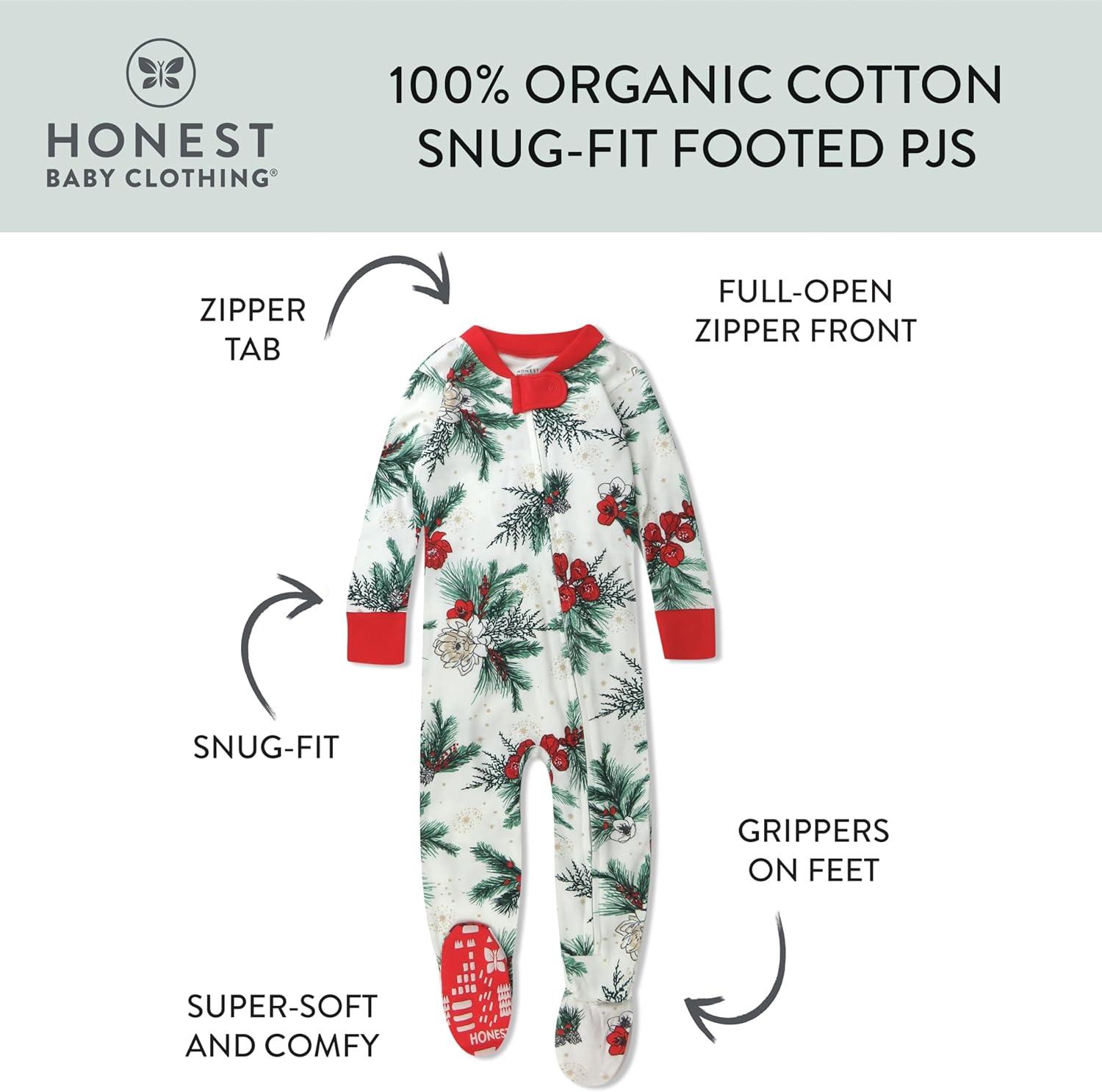 HonestBaby Baby One-Piece Holiday Non-Slip Footed 100% Organic Cotton Pajamas(Holiday Pine Floral)