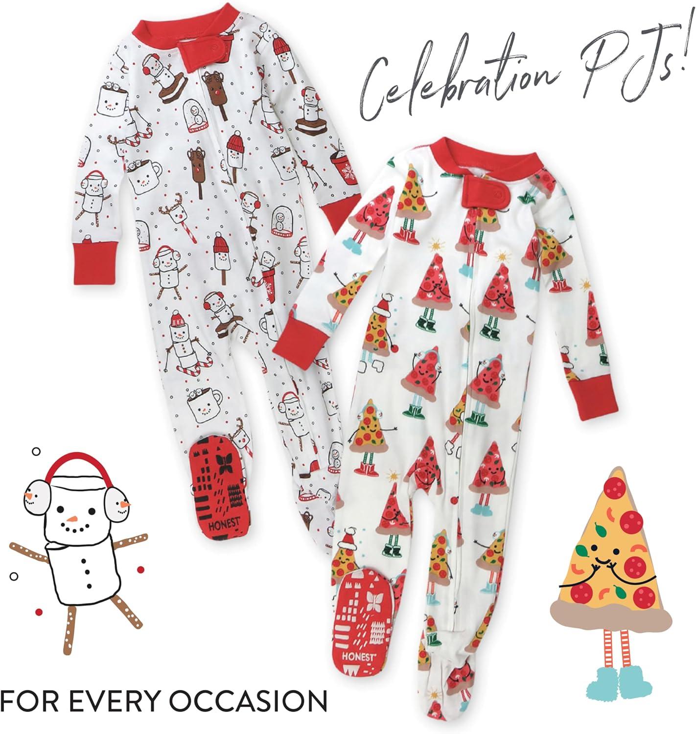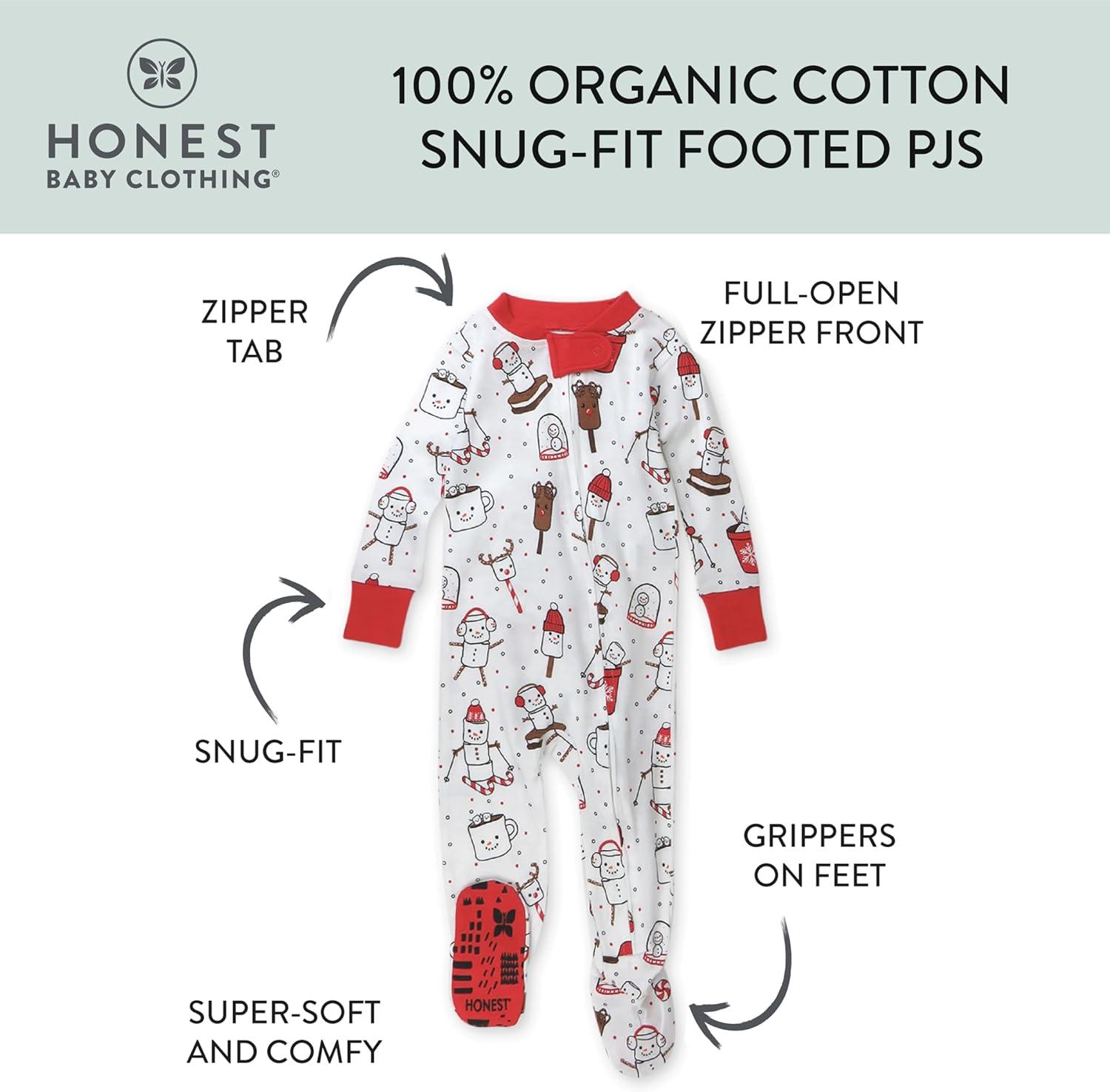 HonestBaby Baby One-Piece Holiday Non-Slip Footed 100% Organic Cotton Pajamas(Ooie Gooie Holiday)