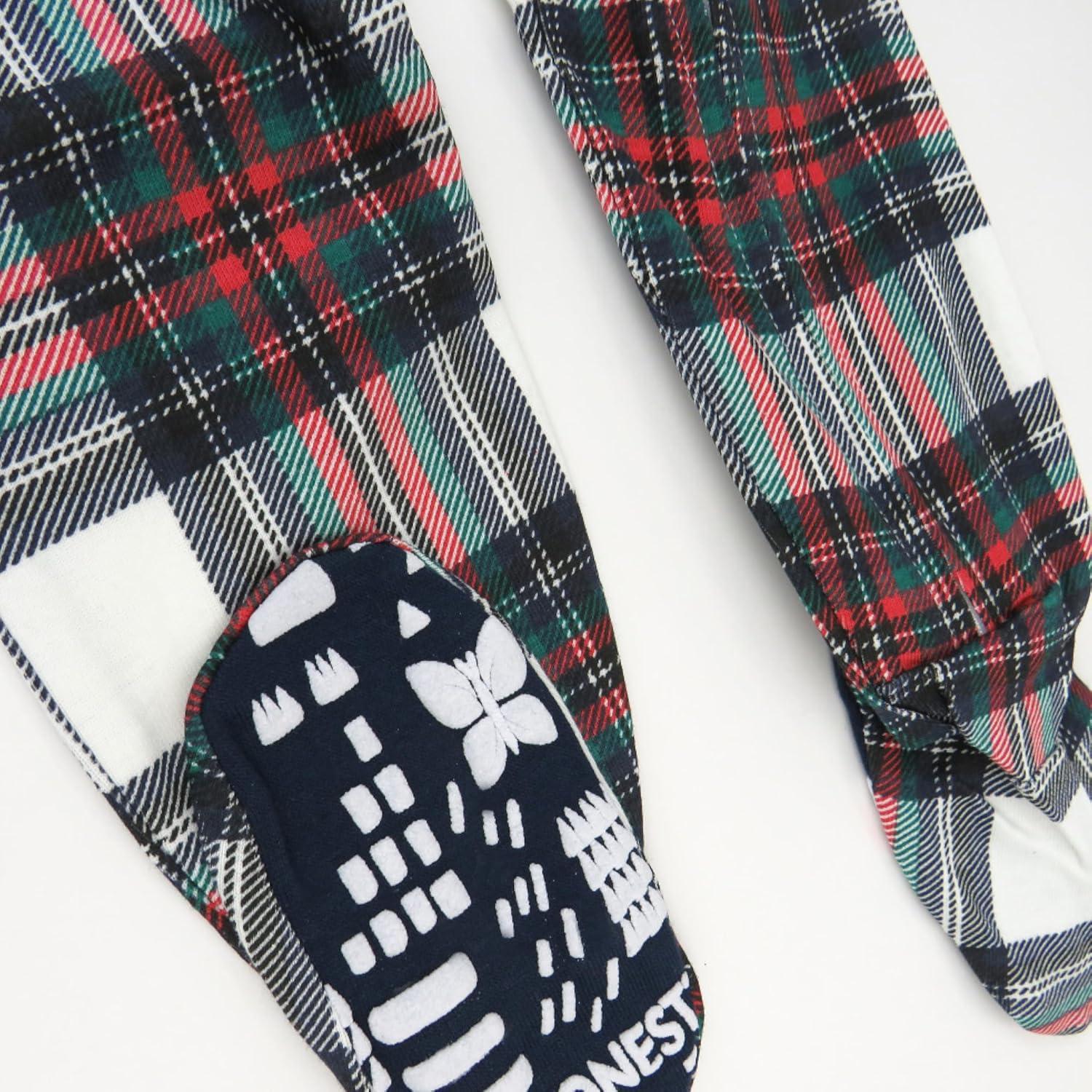 HonestBaby Baby One-Piece Holiday Non-Slip Footed 100% Organic Cotton Pajamas(Red Tartan)