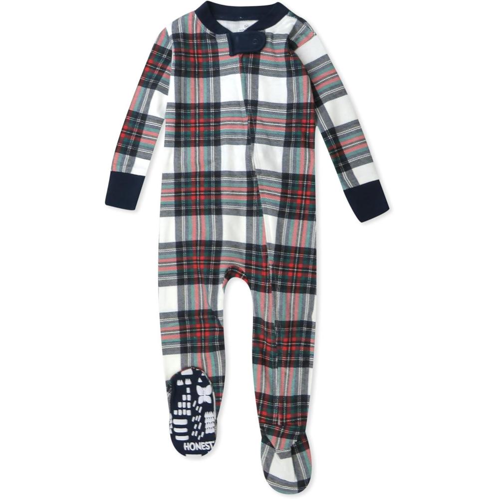 imageHonestBaby Baby OnePiece Holiday NonSlip Footed 100 Organic Cotton PajamasRed Tartan