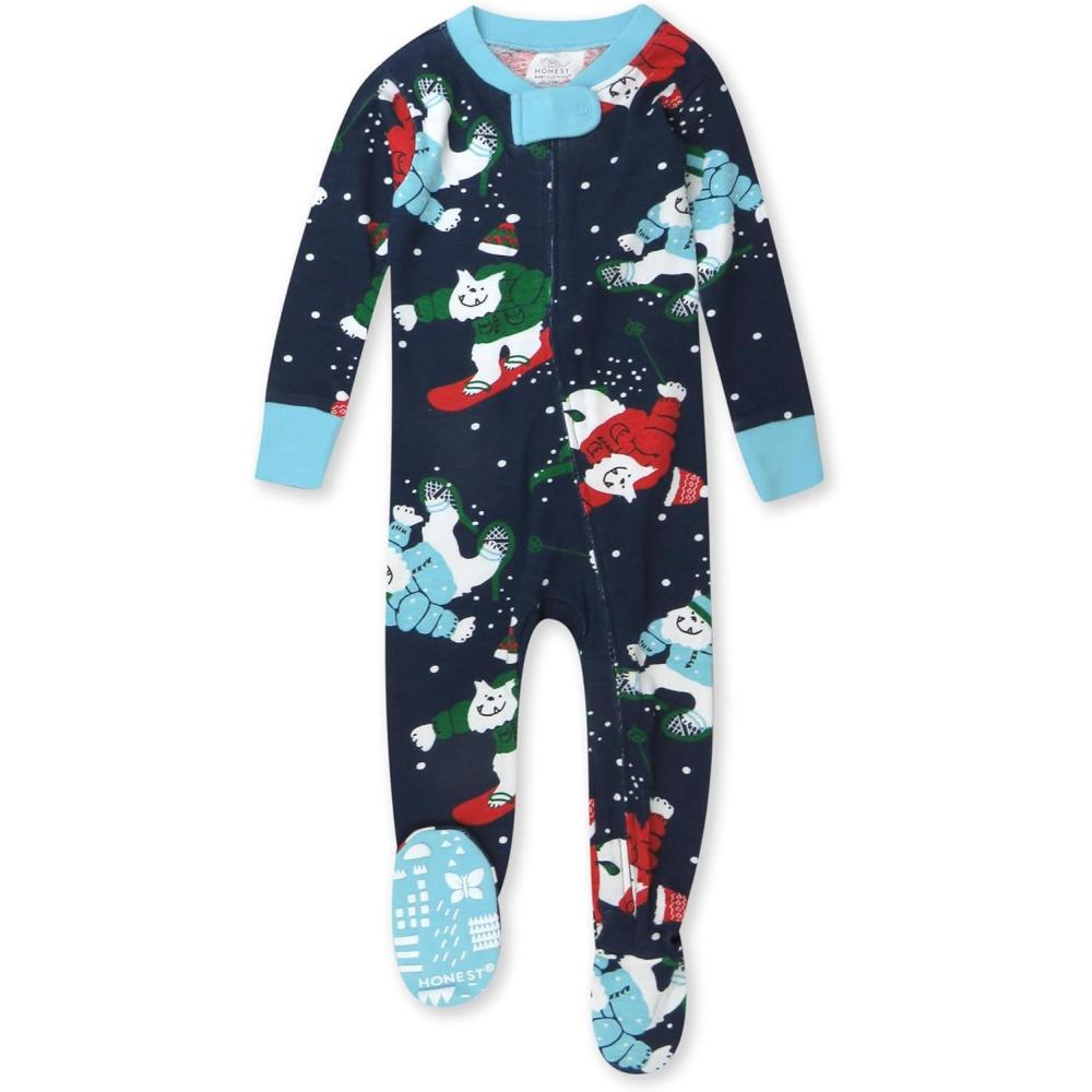 imageHonestBaby Baby OnePiece Holiday NonSlip Footed 100 Organic Cotton PajamasSnow Boardin