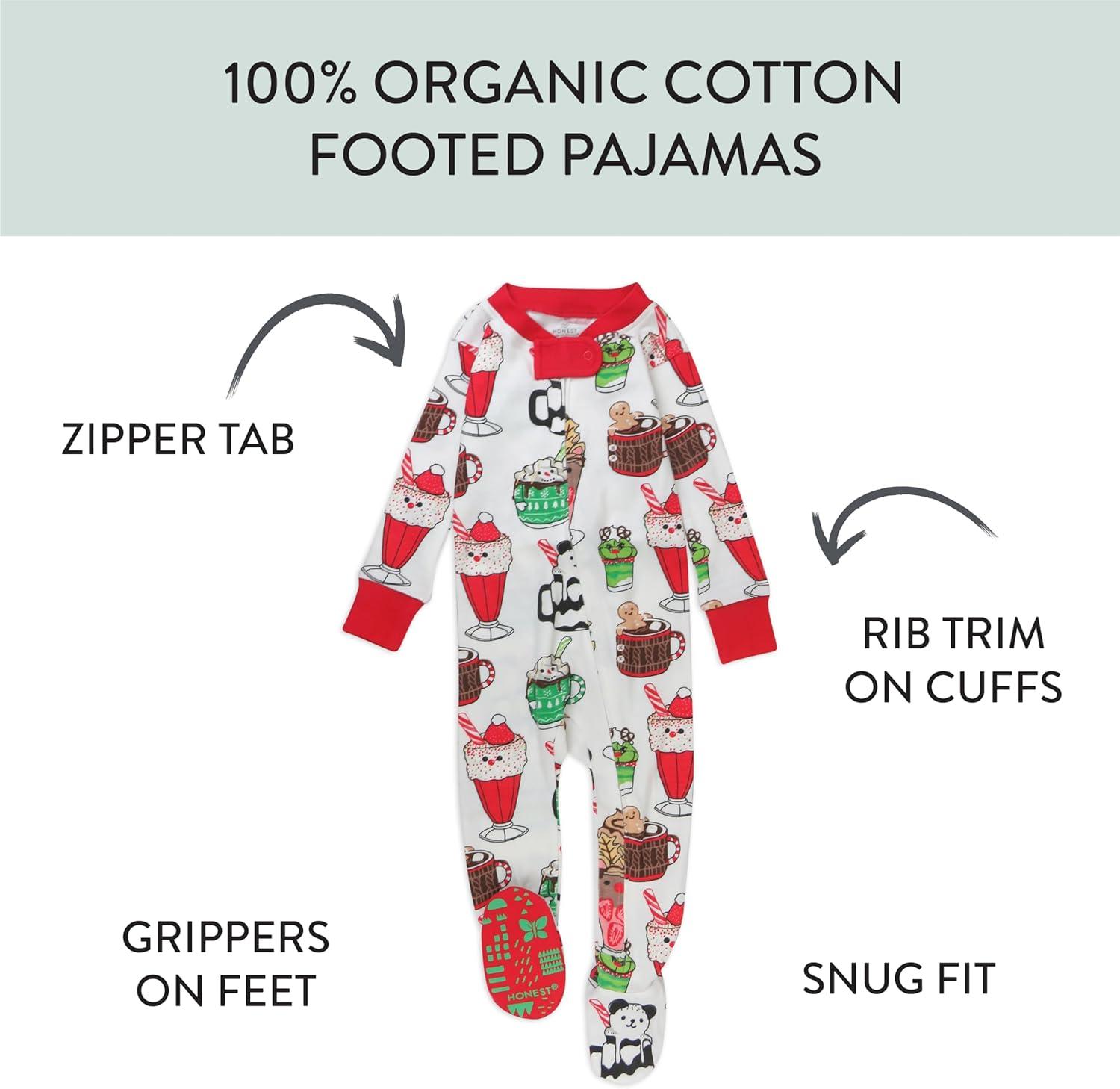HonestBaby Baby One-Piece Holiday Non-Slip Footed 100% Organic Cotton Pajamas(Somethin Brewin)