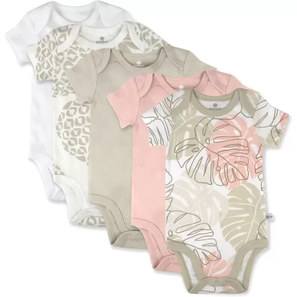 HonestBaby baby-girls 5-pack Short Sleeve Bodysuits One-piece 100% Organic Cotton for Infant Baby Girls(5-pack Pink Avocado Leaf)