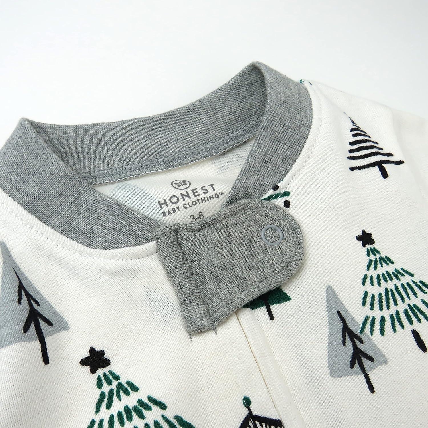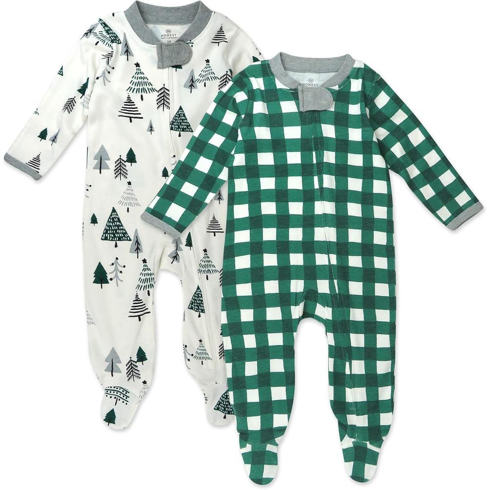HonestBaby Baby Sleep N' Play One-Piece Sleeper Zip-Front Organic Cotton Footed Holiday Pajamas(2-pack Emerald Forest)