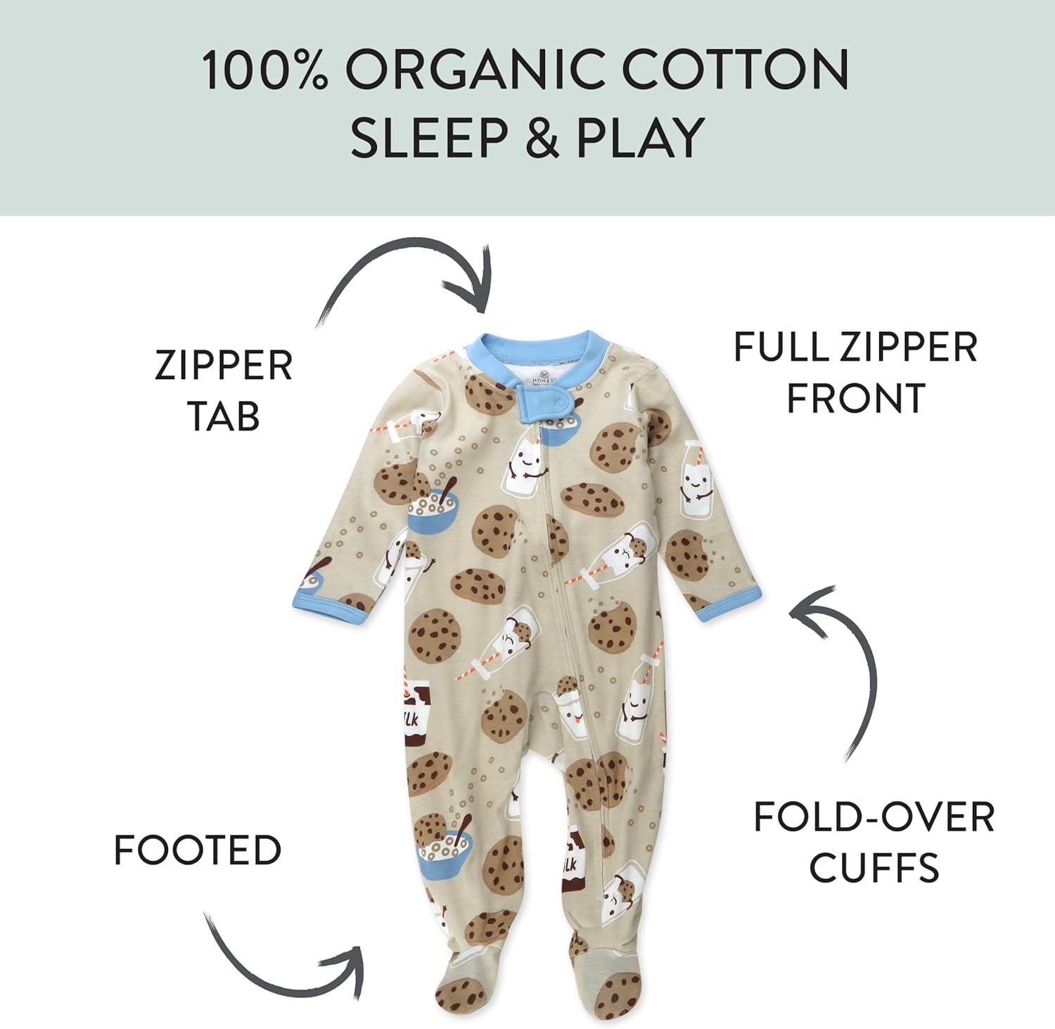 HonestBaby Baby Sleep N’ Play One-Piece Zip-Front Footed Organic Cotton Pajama Sleeper(2-pack Milk N Cookies)