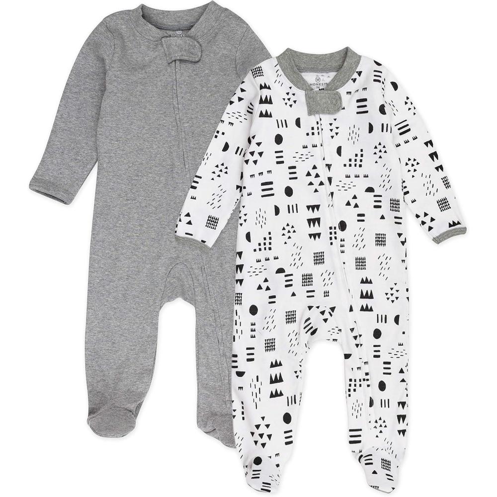 imageHonestBaby Baby Sleep N Play OnePiece ZipFront Footed Organic Cotton Pajama Sleeper2pack Patternplay