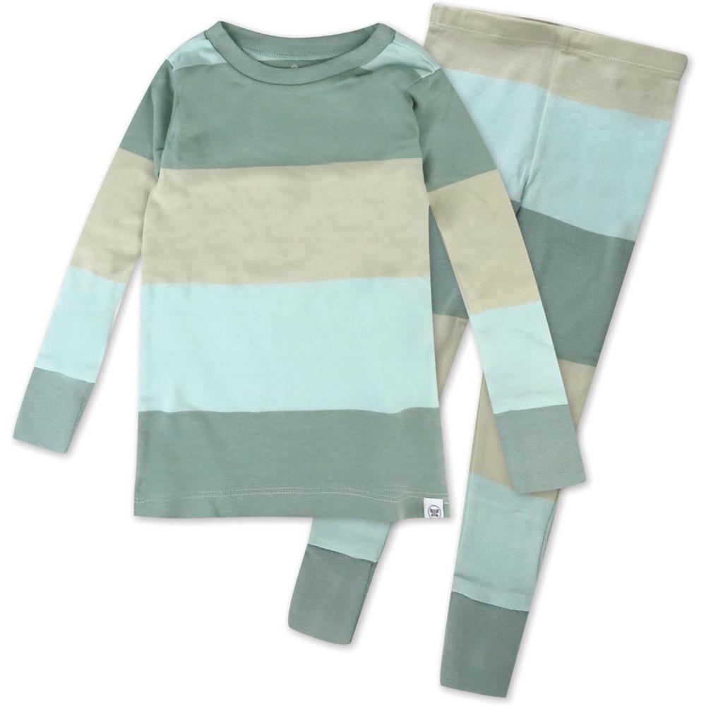 HonestBaby Classics 2-Piece Pajamas Sleepwear Pjs 100% Organic Cotton for Baby, Toddler, Kids(Jumbo Stripe Sage)
