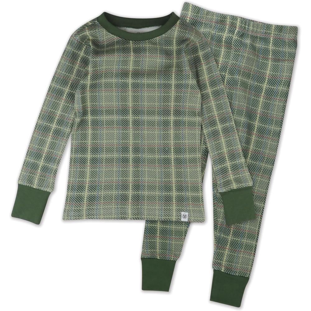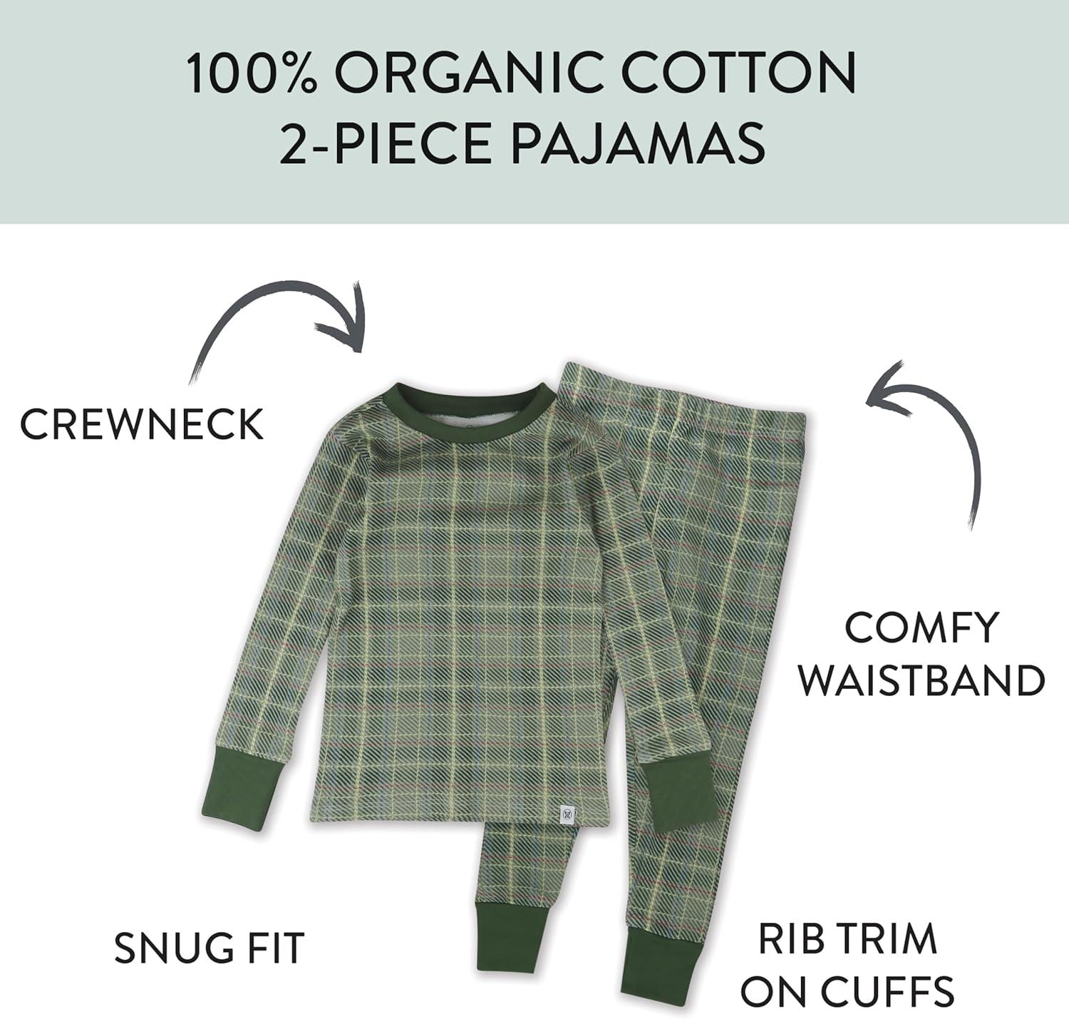 HonestBaby Classics 2-Piece Pajamas Sleepwear Pjs 100% Organic Cotton for Baby, Toddler, Kids(Loden Plaid)
