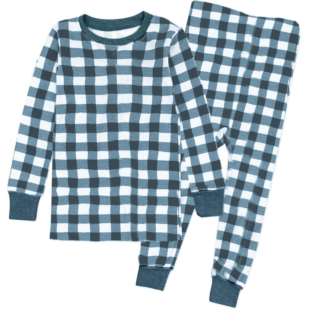 HonestBaby Classics 2-Piece Pajamas Sleepwear Pjs 100% Organic Cotton for Baby, Toddler, Kids(Painted Buffalo Navy Blue)