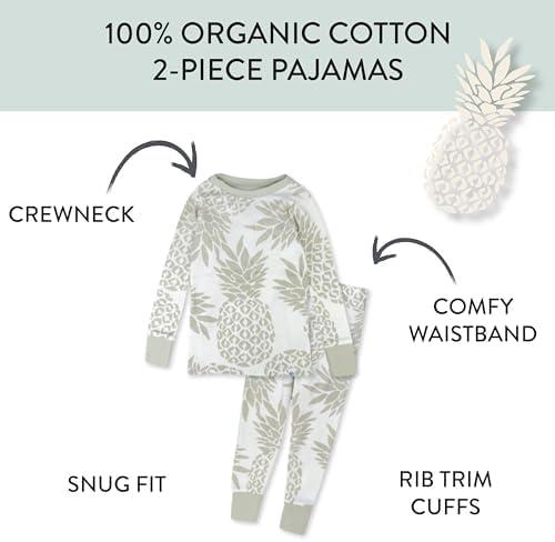 HonestBaby Classics 2-Piece Pajamas Sleepwear Pjs 100% Organic Cotton for Baby, Toddler, Kids(Pineapple Leaf Ivory)