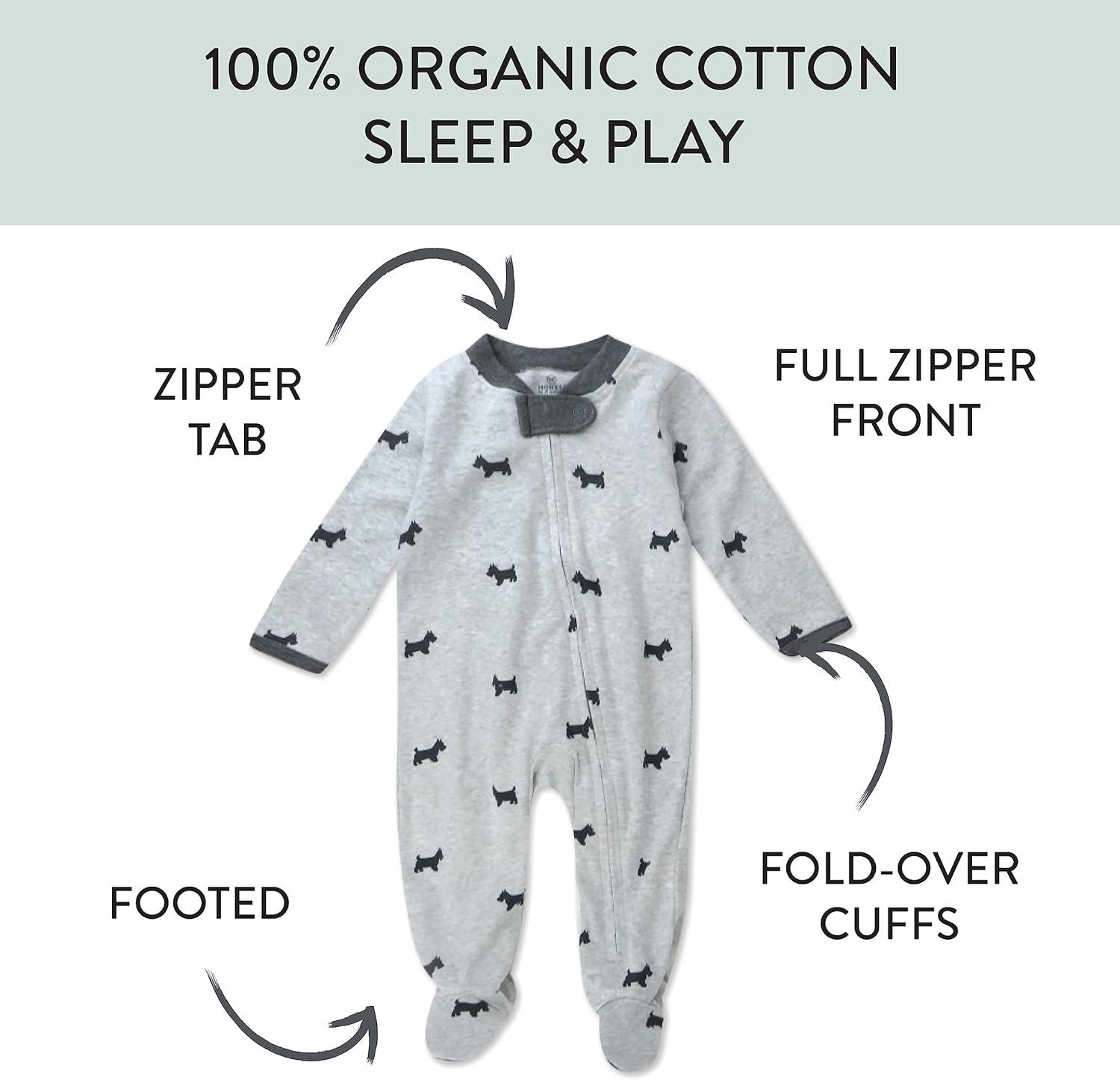 imageHonestBaby Classics Sleep ampamp Play Footed Onepiece Pajama Sleeper 100 Organic CottonGrey Scotty Dog