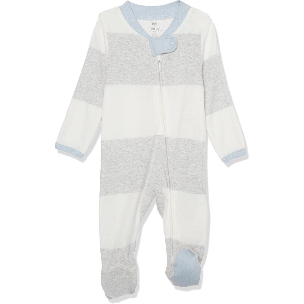 HonestBaby Classics Sleep & Play Footed One-piece Pajama Sleeper 100% Organic Cotton(Rugby Stripe Light Grey Heather)
