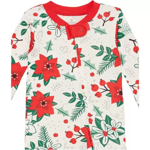 HonestBaby NonSlip Footed Holiday Pajamas OnePiece Sleeper ZipFront Pjs Organic Cotton for Baby Boys Girls Unisex2pack Holiday Floral