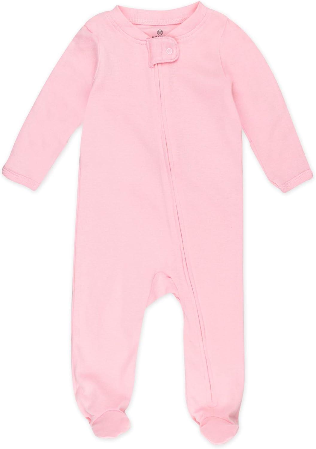 HonestBaby Sleep and Play Footed Pajamas One-Piece Sleeper Jumpsuit Zip-Front PJs 100% Organic Cotton for Baby Girls(2-pack Rose Blossom/Love Dot)