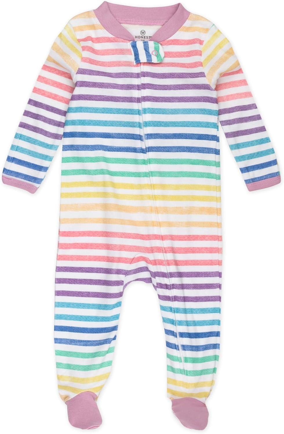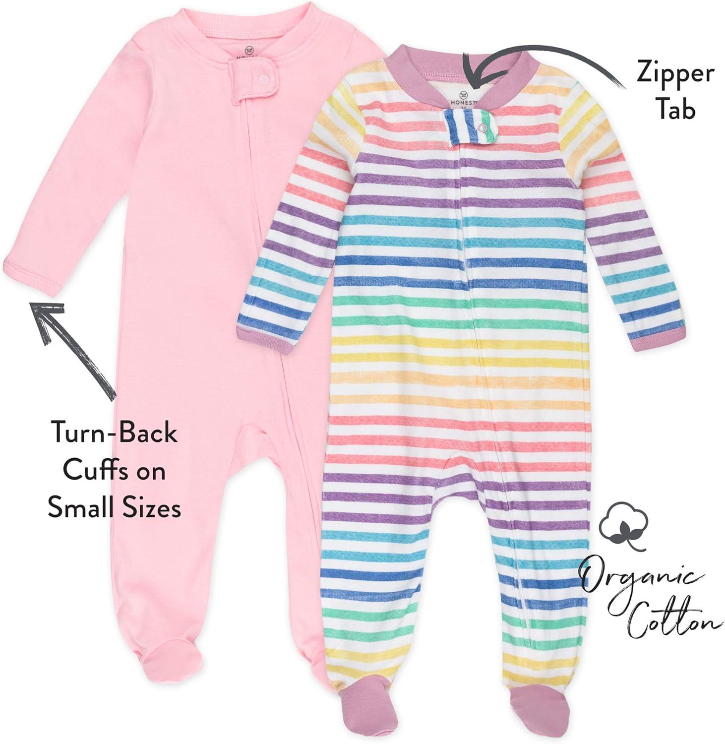 imageHonestBaby Sleep and Play Footed Pajamas OnePiece Sleeper Jumpsuit ZipFront PJs 100 Organic Cotton for Baby Girls2pack Rainbowstripe