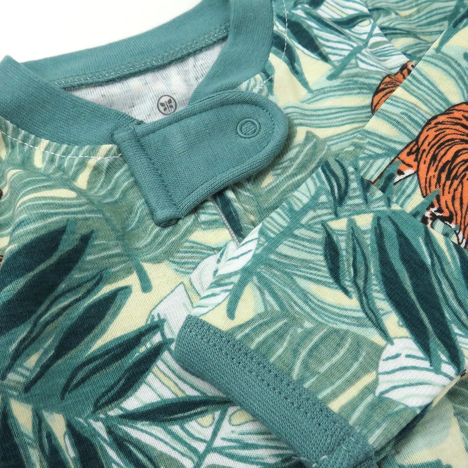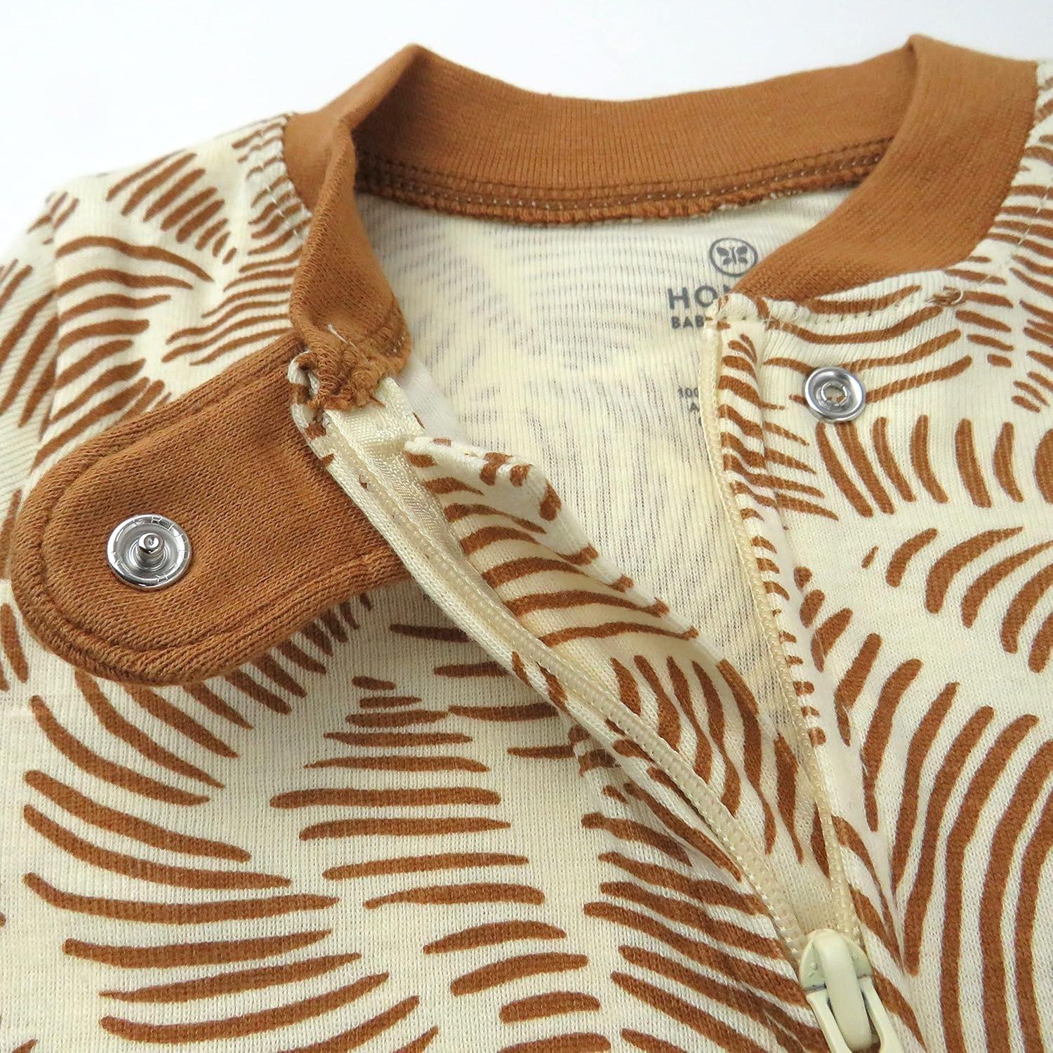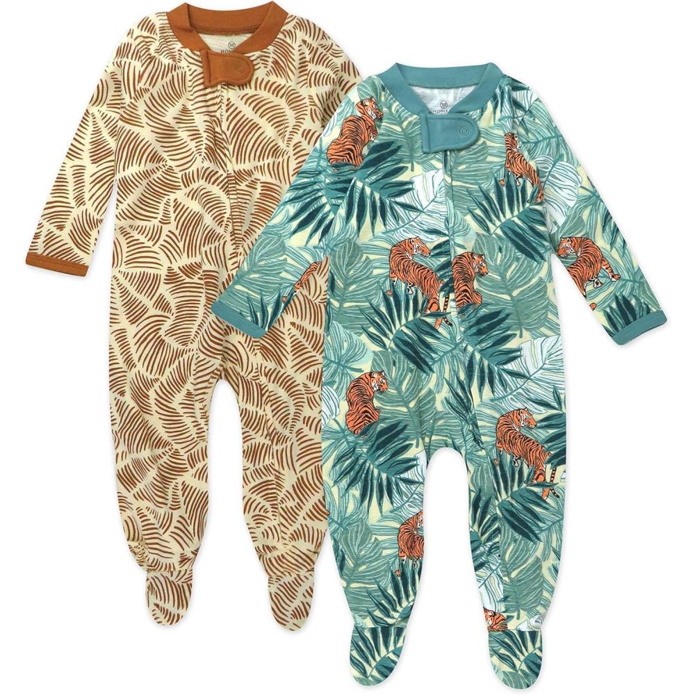 HonestBaby Sleep and Play Footed Pajamas One-Piece Sleeper Jumpsuit Zip-Front PJs 100% Organic Cotton for Baby Girls(2-pack Tiger Time)