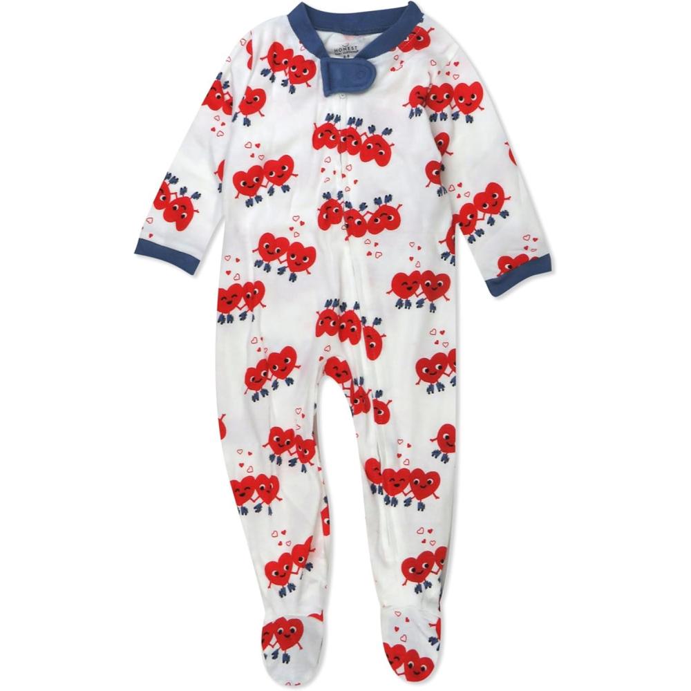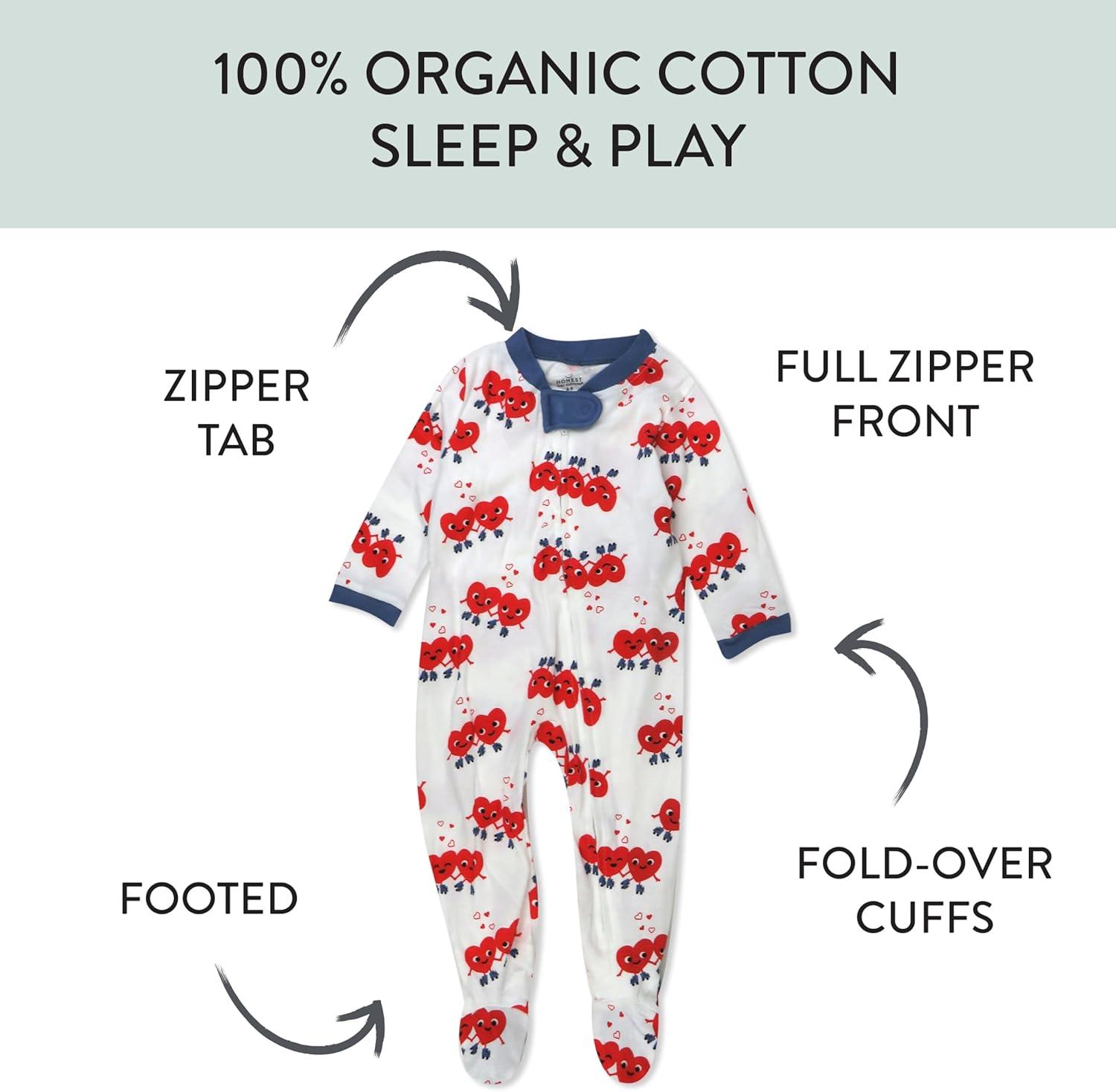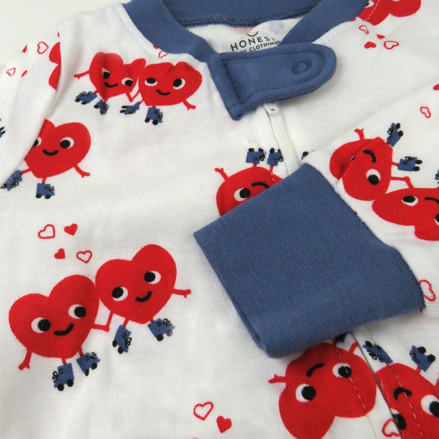 HonestBaby Sleep & Play Footed One-Piece Pajama Sleeper 100% Organic Cotton, Baby Girls(Love at First Bite)