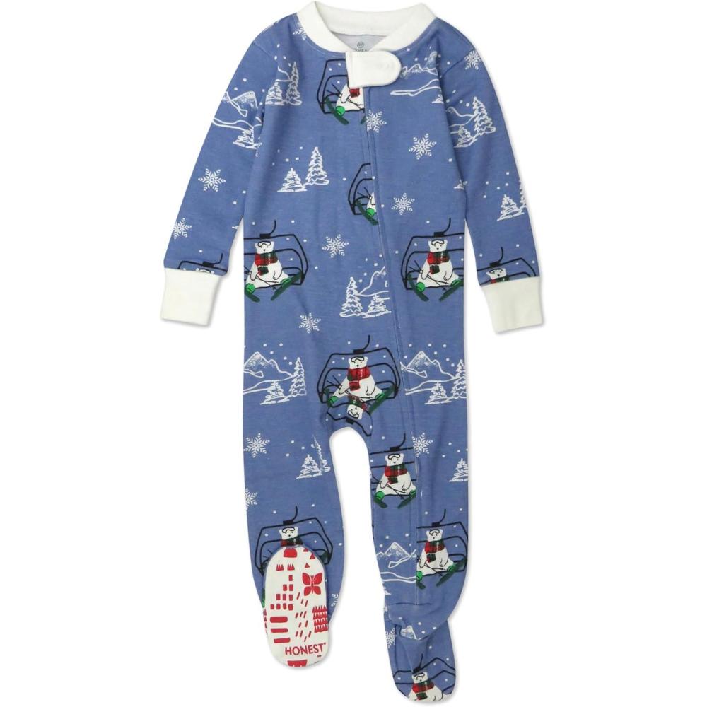 HonestBaby unisex-baby Celebration Non-slip Footed Pajamas One-piece Sleeper Zip-front Pjs 100% Organic Cotton(Snow Boardin)
